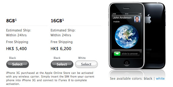 Apple Selling Unlocked IPhone 3G in Hong Kong