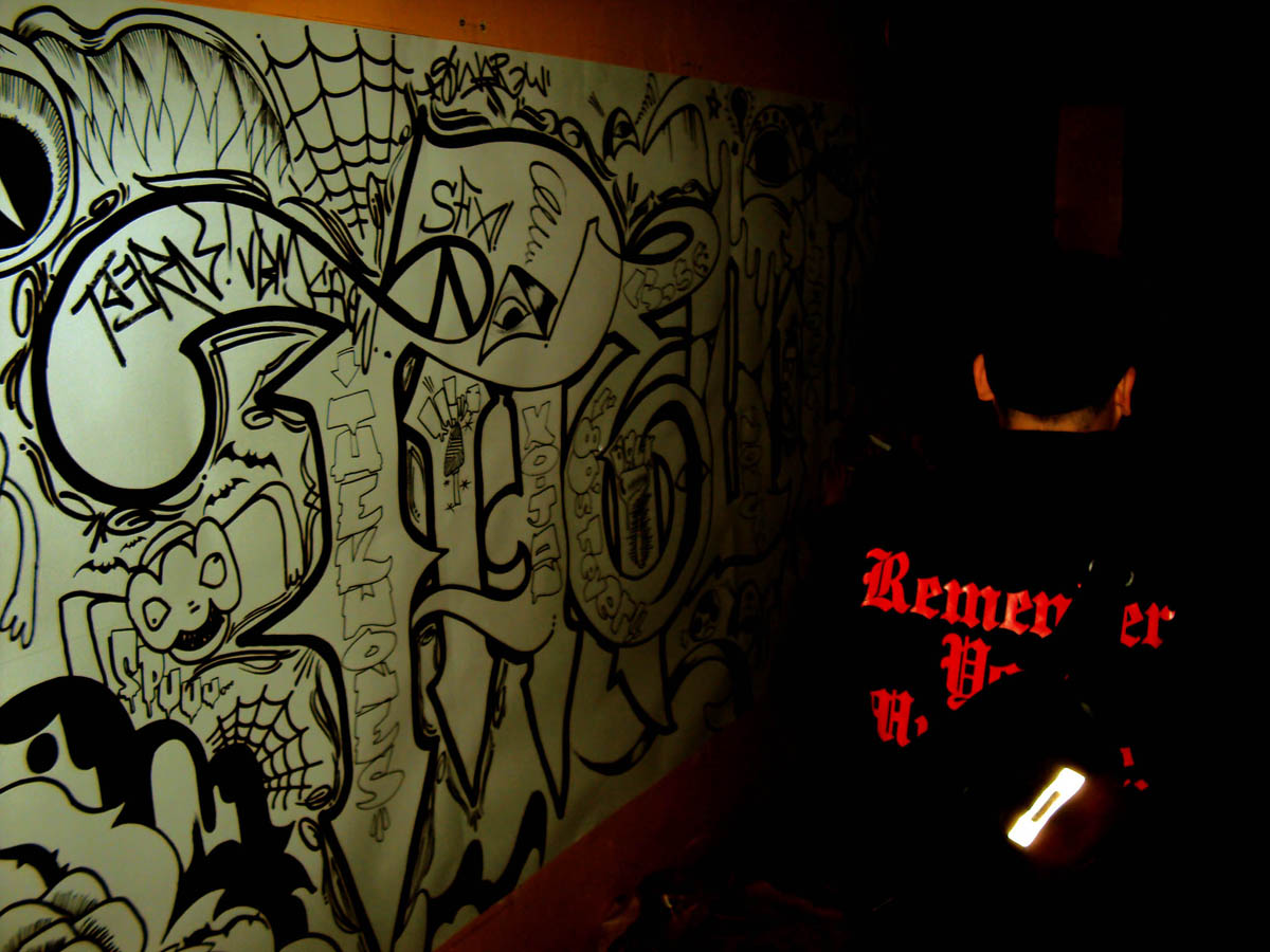 KW、よっちゃん、XOJANと自分の4人で一つのキャンバスにアタック。